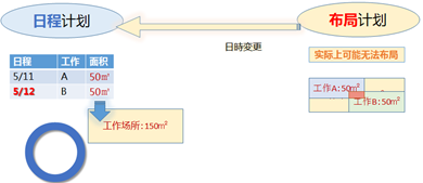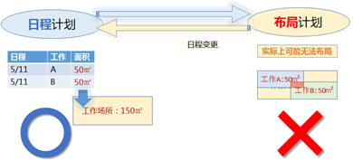 這就造成在日程計劃和布局計劃在相互轉(zhuǎn)換的過程中需要跨過多個工序來反復(fù)修改以及調(diào)整日程和布局。